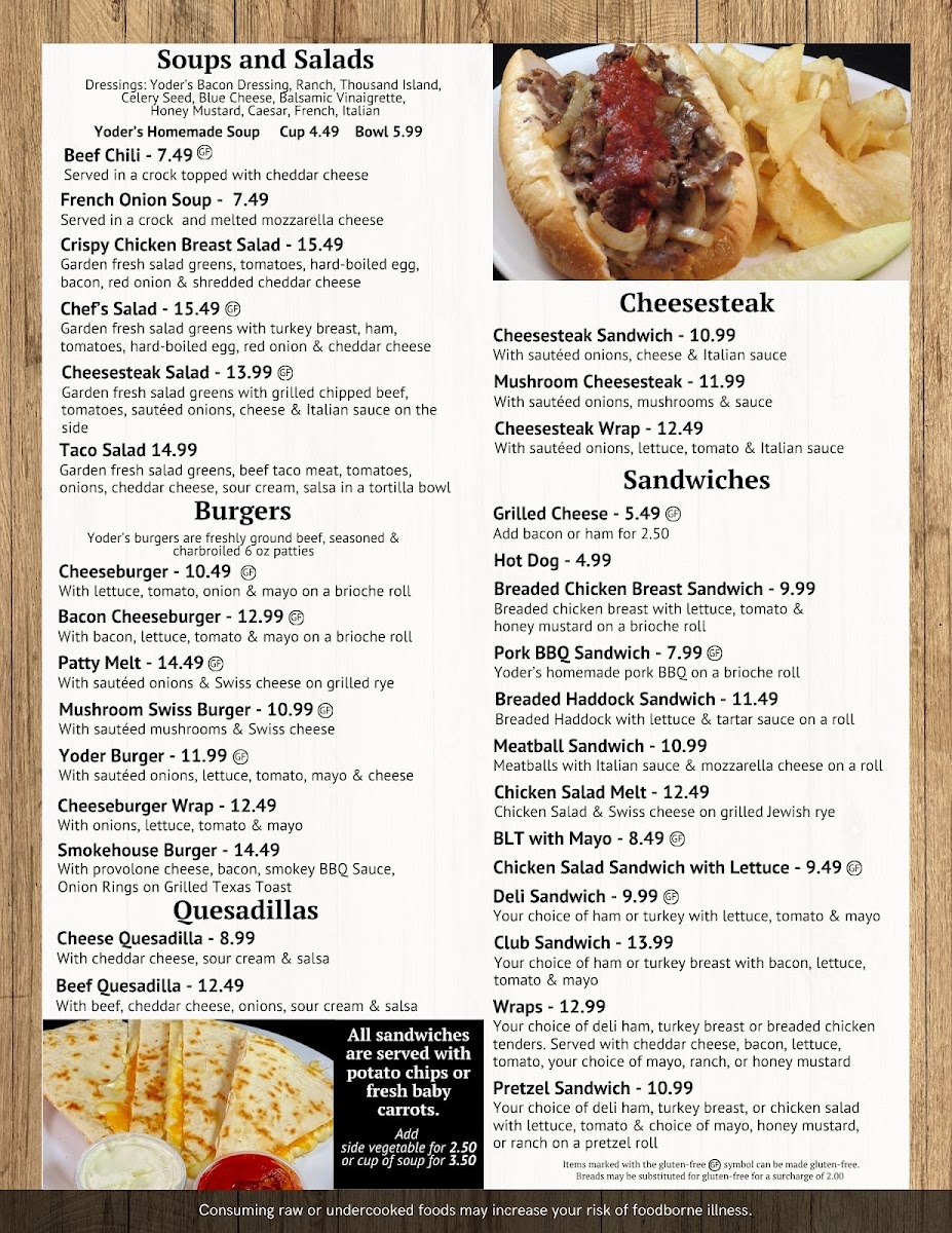 “ Our go to buffet had long lines so we decided to try something new. Yoders was a pleasant alternative. There was ample choices, everything was fresh and plentiful from the salad bar to the desserts. They offer a senior discount but you have to remember to ask, there is a modest gift shop but the dining area has no personality. My tea water was luke warm and the check comes with tip suggestions which I thought were humorous if you're ordering the buffet but they have an al a carte menu too. ”